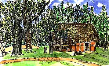 along it. A Spanish colonial dwelling and an Apalachee house have