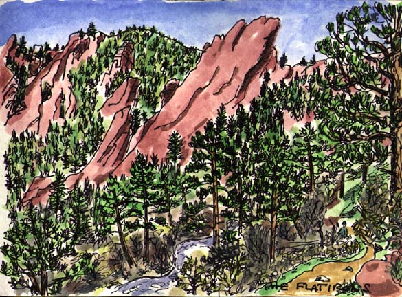 This ultimate row of houses at the top of Boulder is part of another Chautauqua. One of only three remaining and still hosting summer programs, she said. (We had been charmed by the original in New York State last September.) The land for this summer intellectual retreat had been granted to the Chautauqua in perpetuity, for a dollar. Now the City of Boulder is reconsidering. My hostess told me the cottage next door sold for $300,000 last year.. to a CALIFORNIAN, she whispered. She was from Louisiana (cant you tell bhy mhy accent?), and her husband had retired here from Texas. THEY used to complain about the Texans, she confided, but now its the Californians. So the Chautauqua Association and the City are squabbling. Echoes of Fairhope, Alabama. So much for civic agreements with intentional communities in perpetuity. As long as the rivers run, Kemosabe?